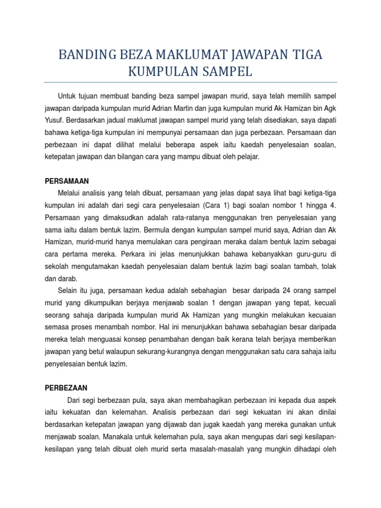 Banding Beza Maklumat Jawapan Tiga Kumpulan Sampel Pdf